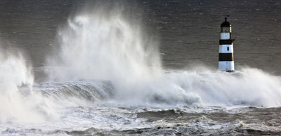 Waves Crashing Lighthouse Seaham Wall Mural