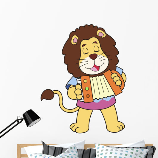 Cartoon Lion Playing Accordion