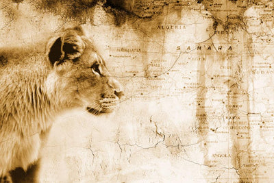 Lion Front Old Map Wall Mural