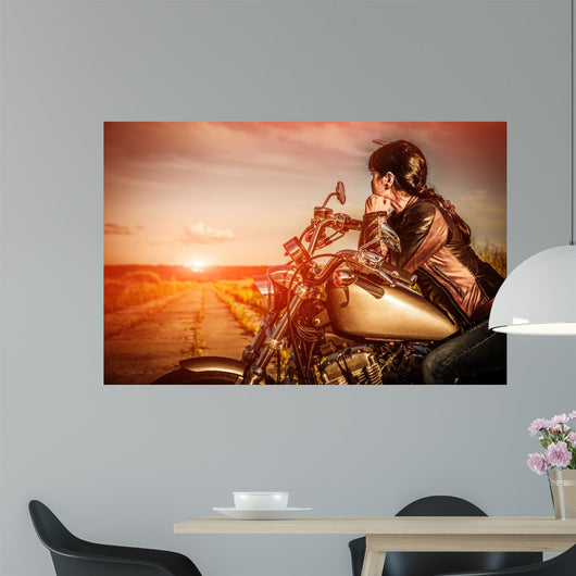Biker Girl Motorcycle Wall Mural