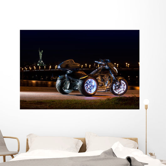 Black Trike Standing Night Wall Mural