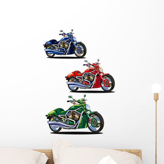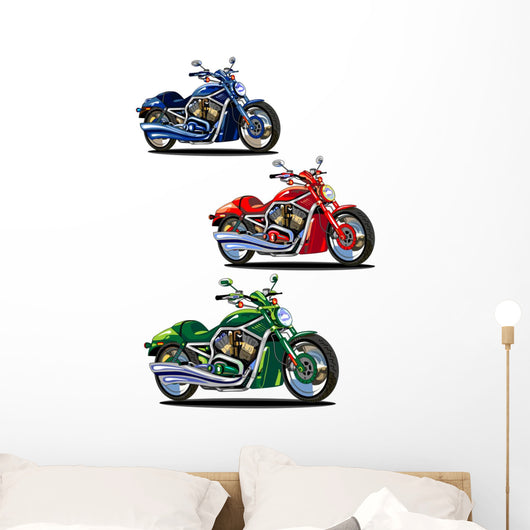 Set Bikes Green Blue Wall Decal Sticker Set