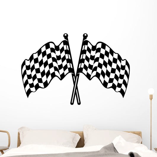 Two Crossed Checkered Flags Wall Decal