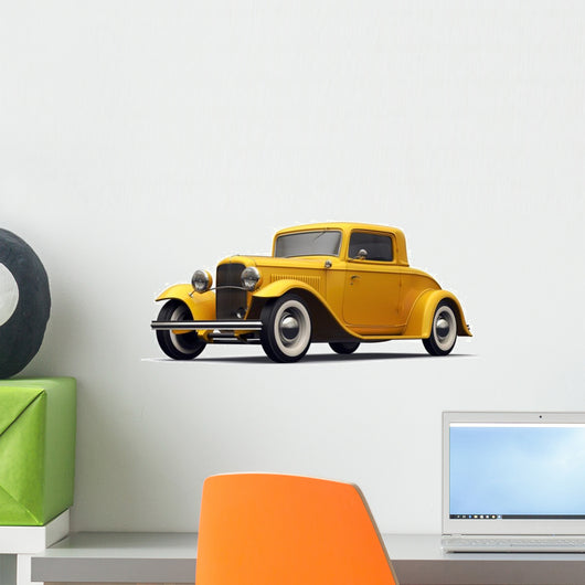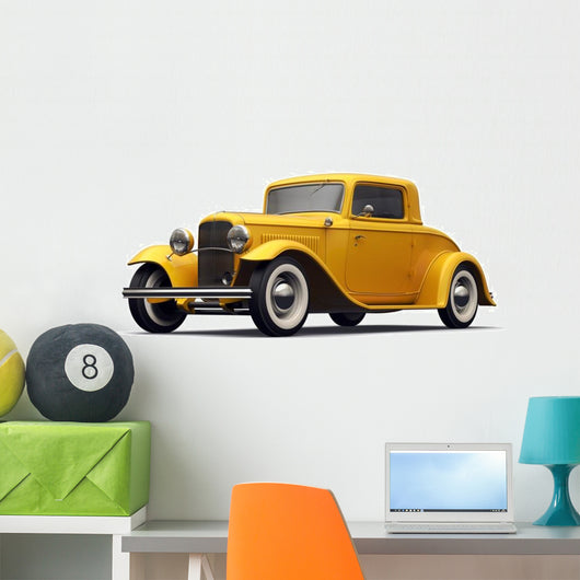 Vintage Yellow Car Perspective Wall Decal