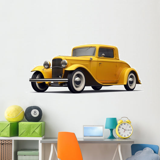 • Vintage Yellow Car Perspective Wall Decal