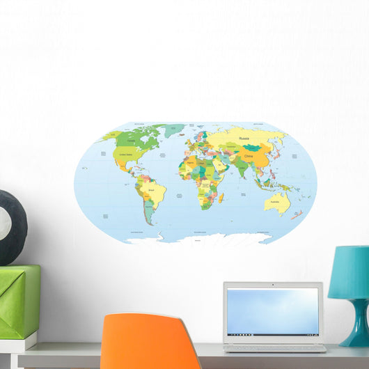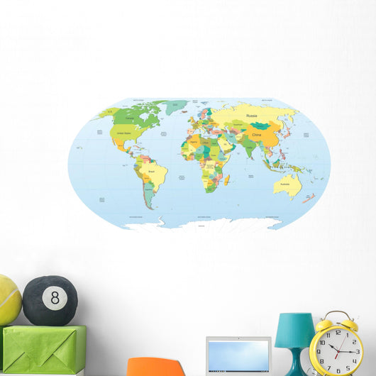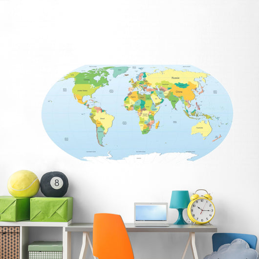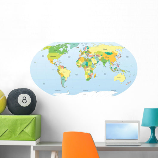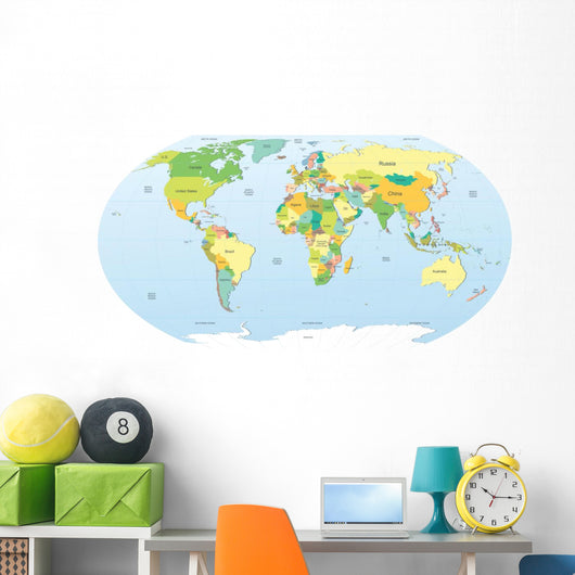 Political World Map Color Wall Mural