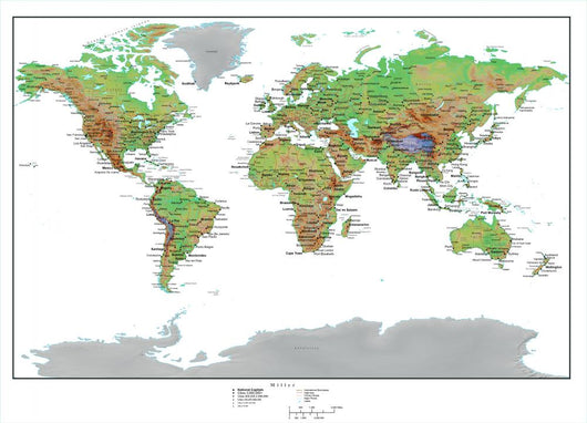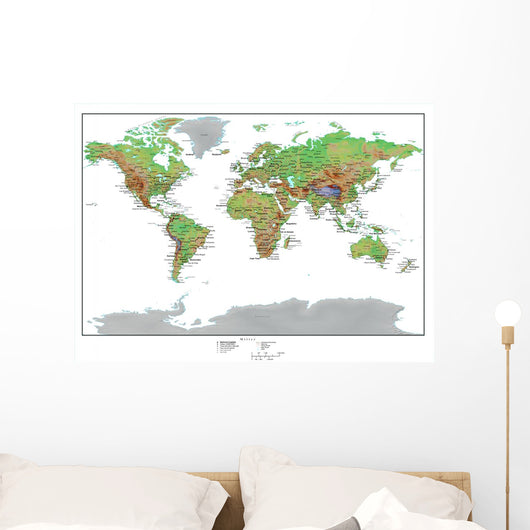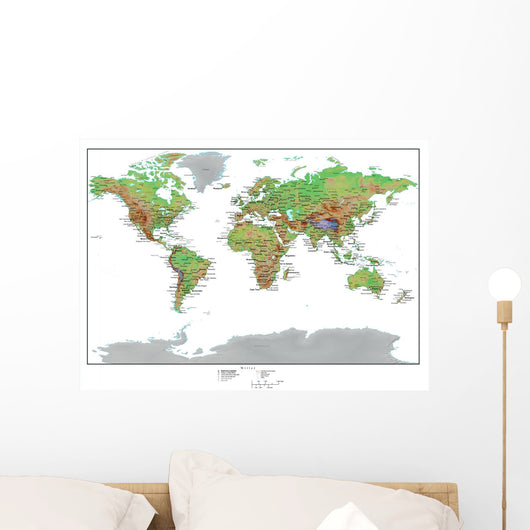 Topographical World Map Wall Mural