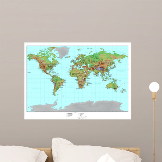 Topographical World Map Wall Mural