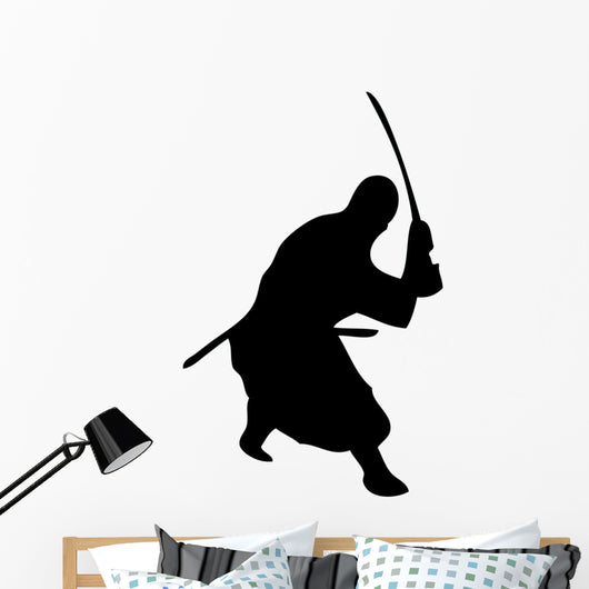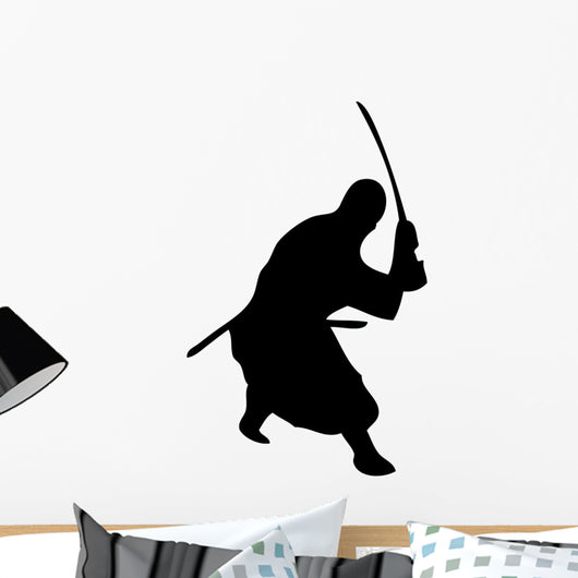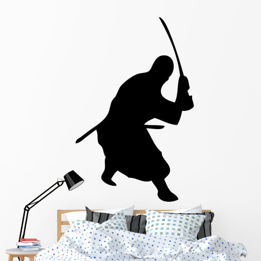 Samurai Silhouette Swinging Katana Wall Decal