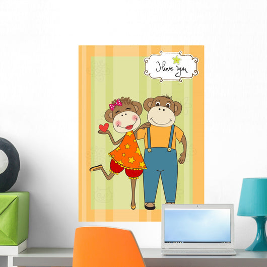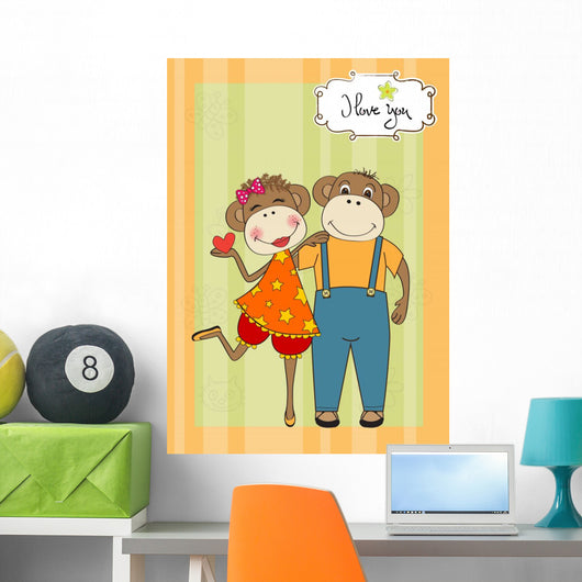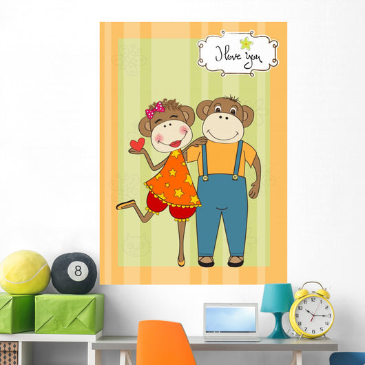 Monkeys Couple Love Wall Mural