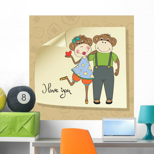 Monkeys Couple Love Wall Mural