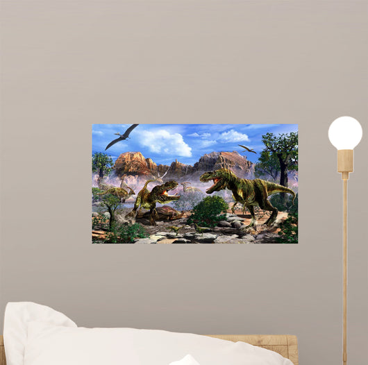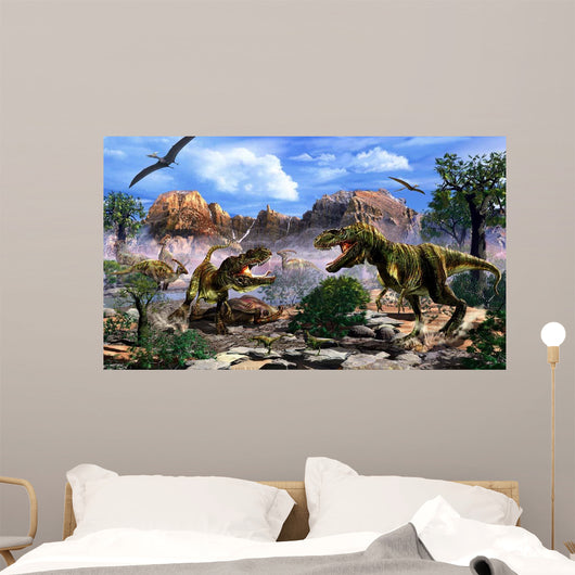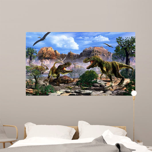 Two T-rex Dinosaurs Fighting Wall Decal