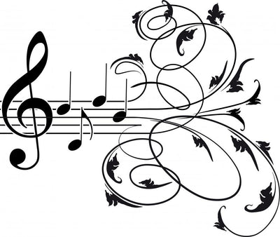 Treble Clef And Musical Notes With Decorative Floral Swirls Wall Decal