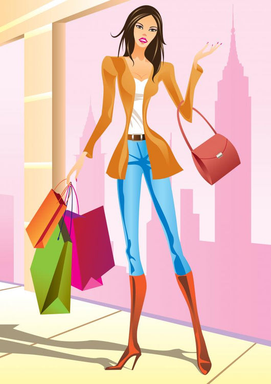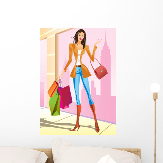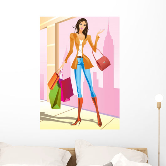 Fashion Shopping Girls with Wall Mural