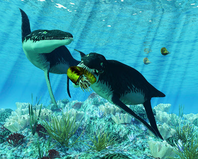 Liopleurodon Eating Ammonite Wall Decal