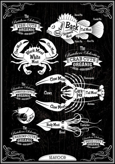 Seafood Labels Icons Badges Wall Mural