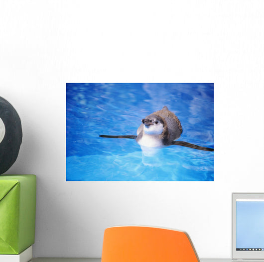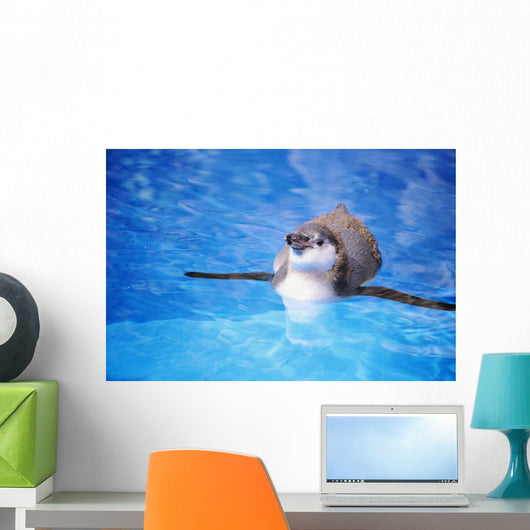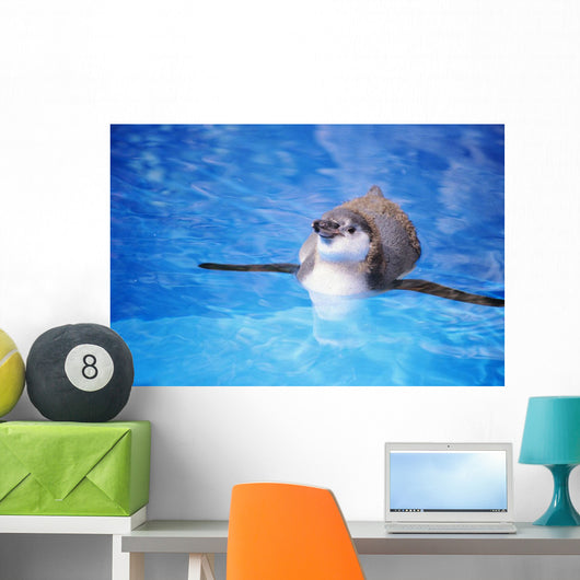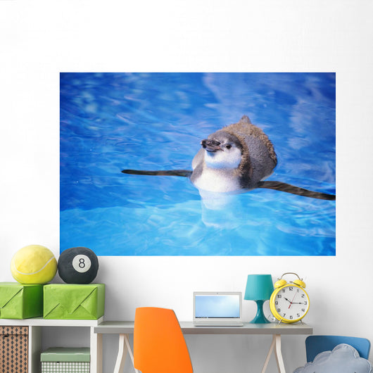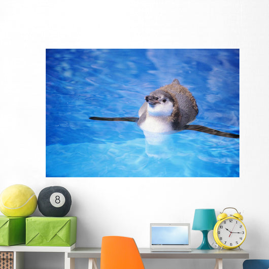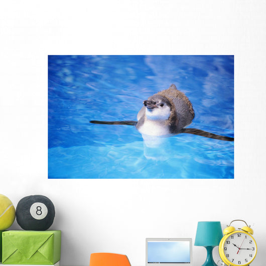Baby Penguin Floating In Turquoise Water Wall Mural