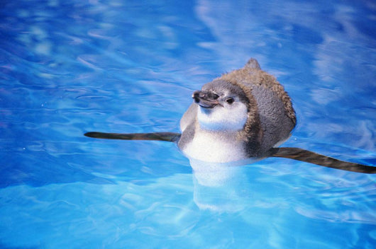 • Baby Penguin Floating In Turquoise Water Wall Mural