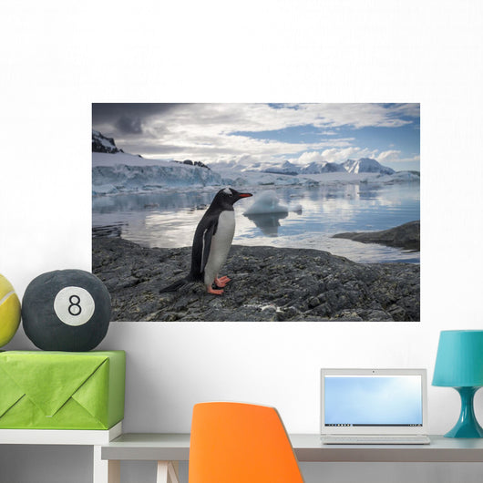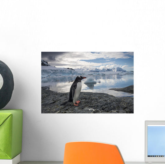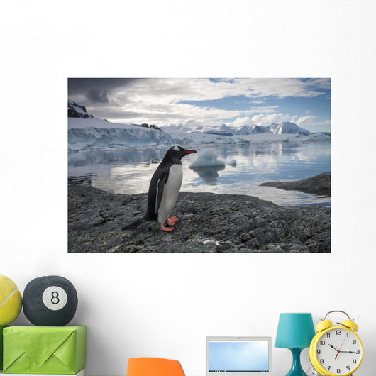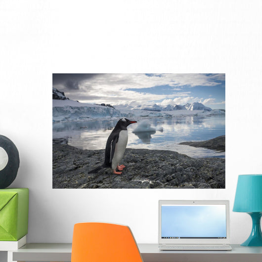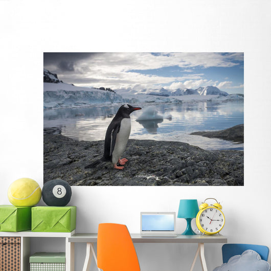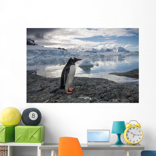 Gentoo Penguin standing on rocky shoreline along Errera Channel Wall Mural