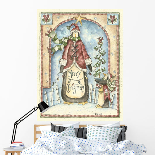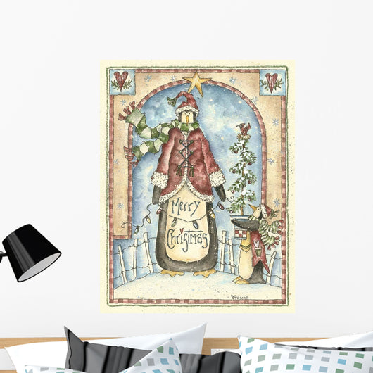 Little Penguin Holding Tree Wall Decal