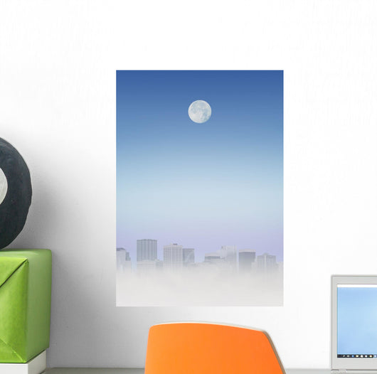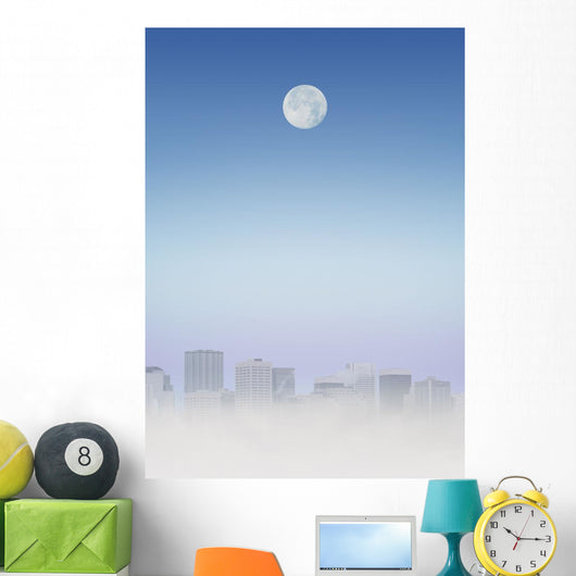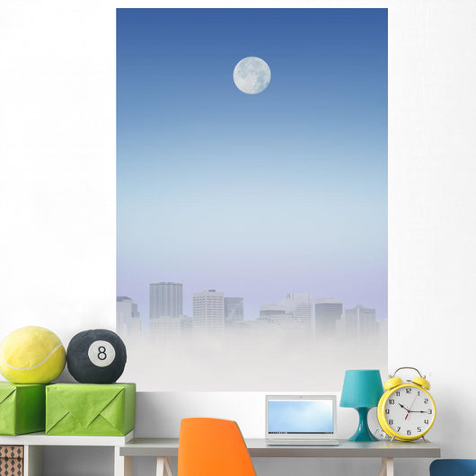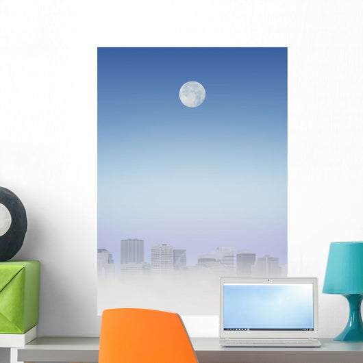 Moon Over Buildings Wall Mural