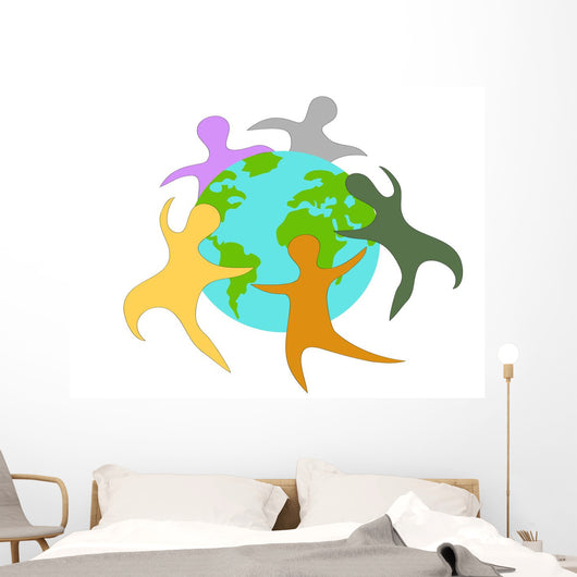 People around World Wall Decal