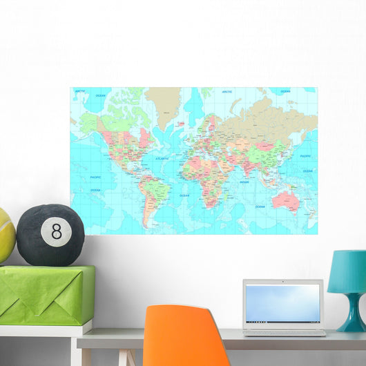 Political World Map Wall Decal
