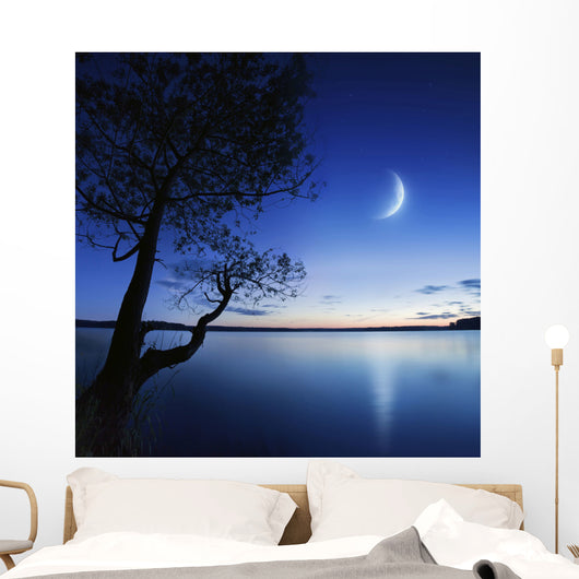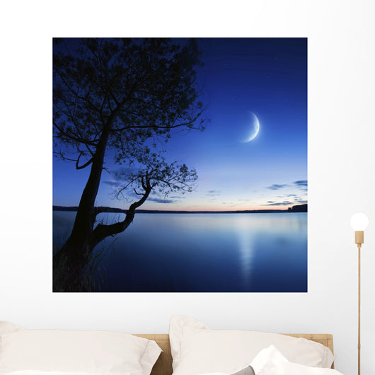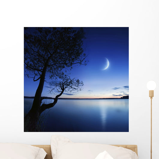 Silhouette Lonely Tree Lake Wall Decal