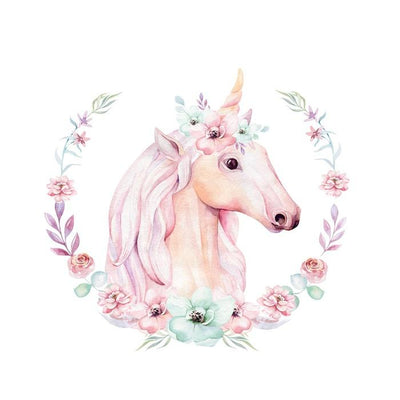Watercolor Unicorn with Flowers Wall Decal
