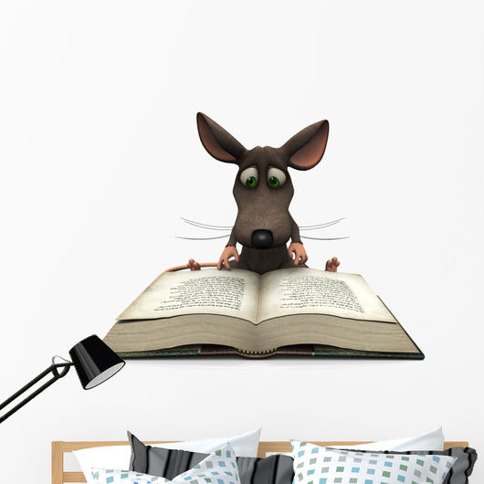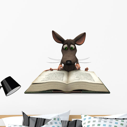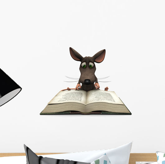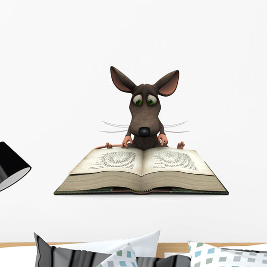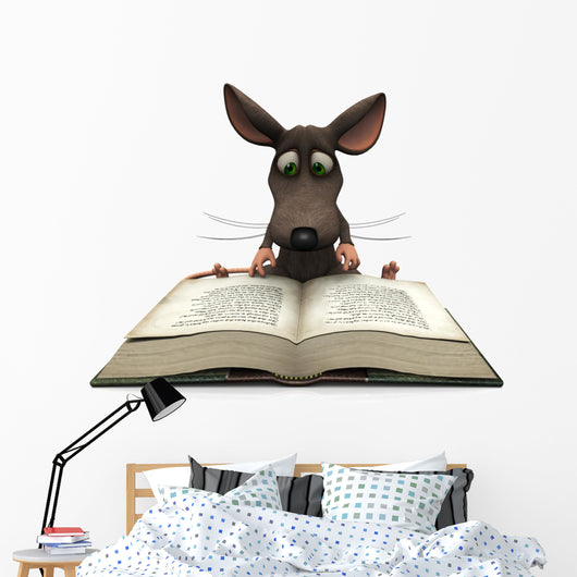 Cartoon Mouse Reading Wall Decal