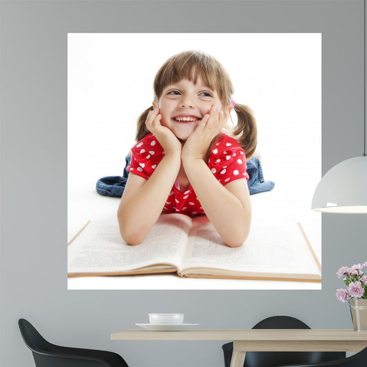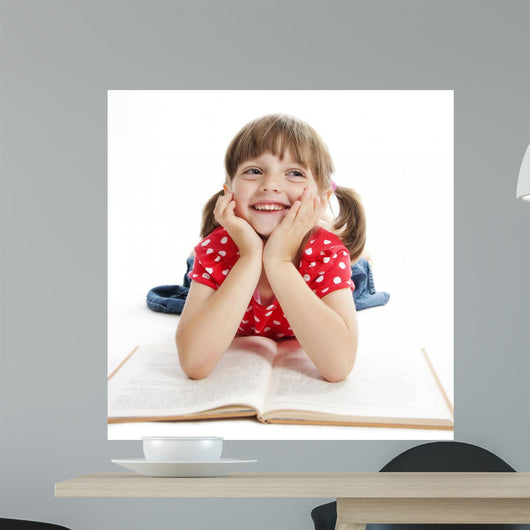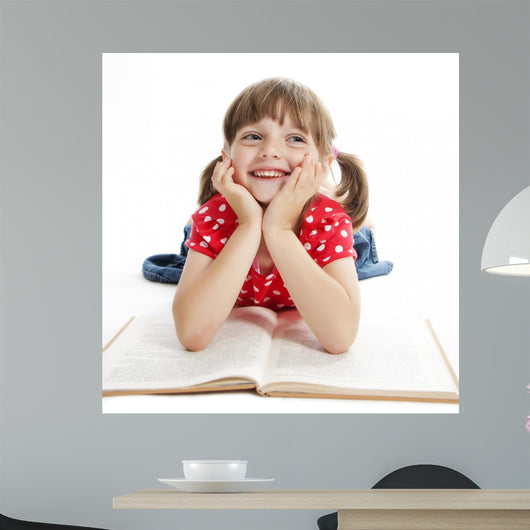 Little Girl Reading Book Wall Decal