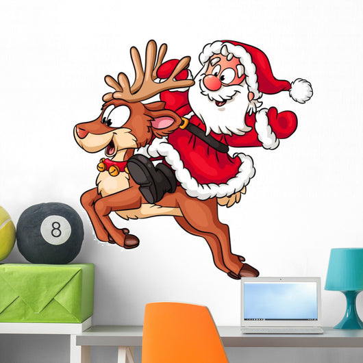 Weihnachtsmann Reitet Auf Rentier Wall Decal