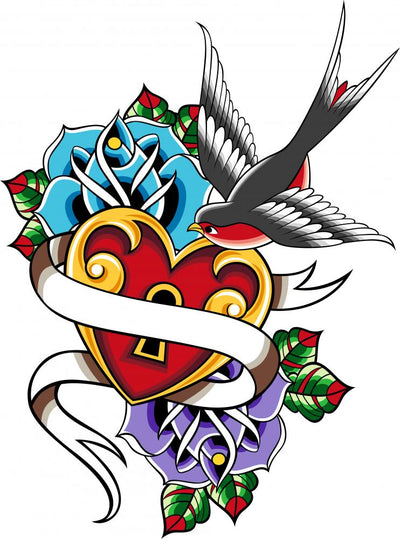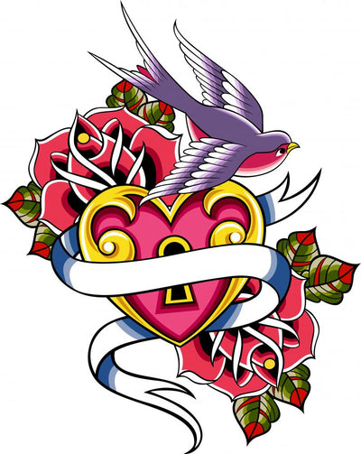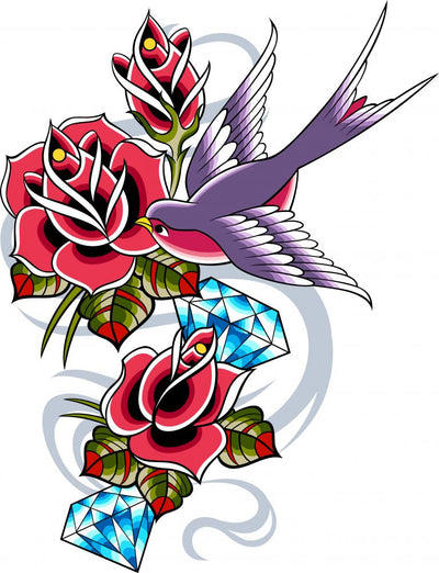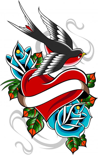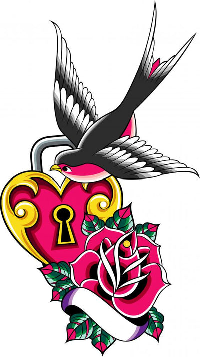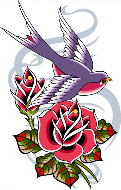 Swallow Rose Tattoo Wall Decal