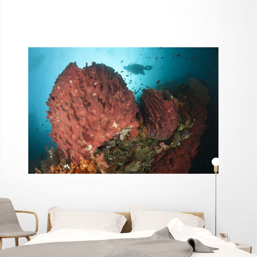 • Diver Approaching Giant Barrel Wall Decal Design 1