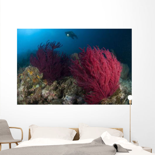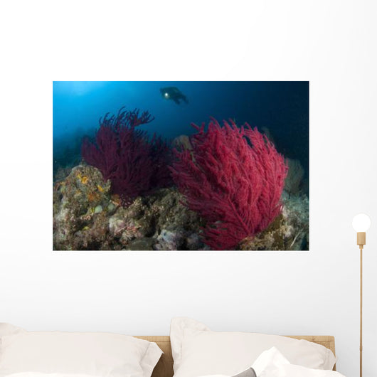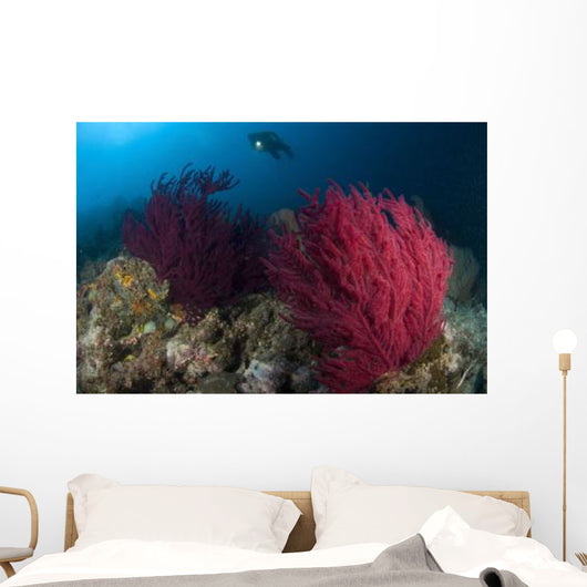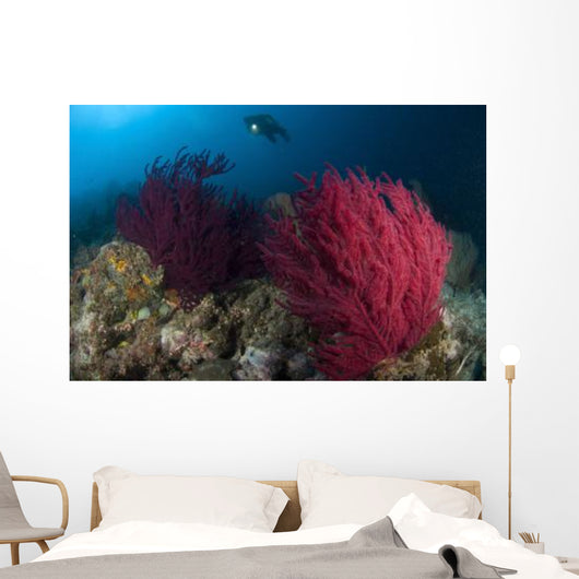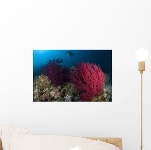 Diver Looks Colorful Reef Wall Decal Design 1