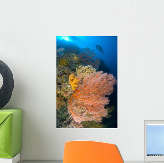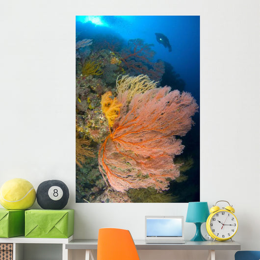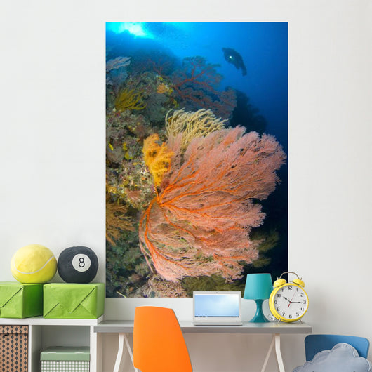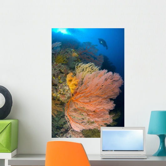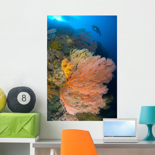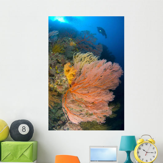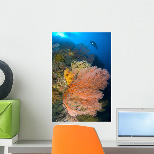 Diver Looks Large Gorgonian Wall Decal Design 2