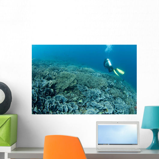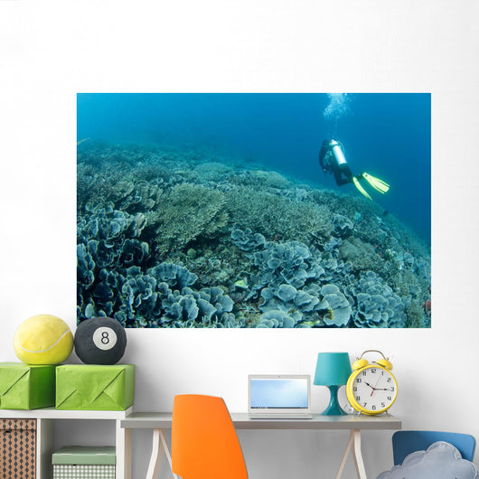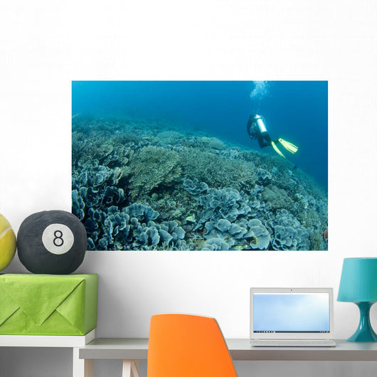 Diver Swims over Shallow Wall Decal