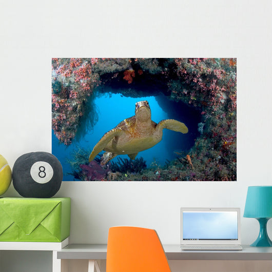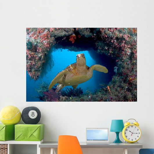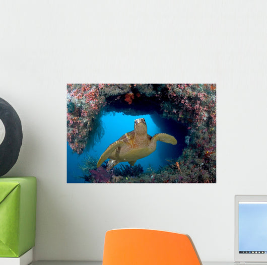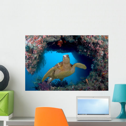 Green Sea Turtle Swims Wall Decal Design 3