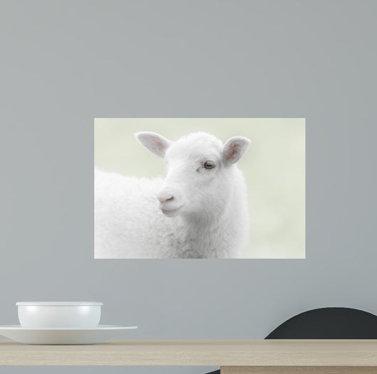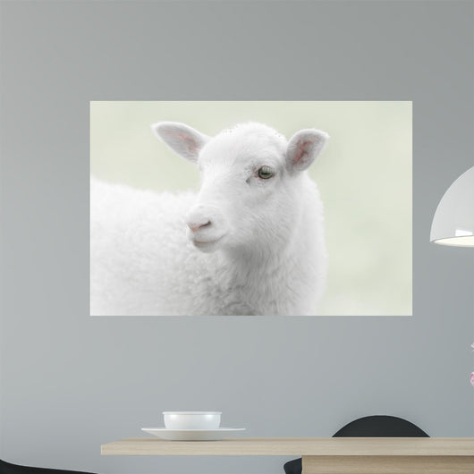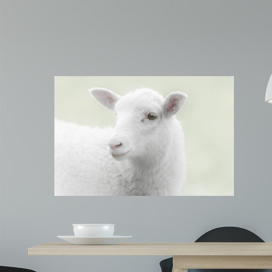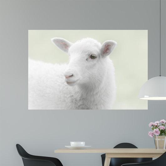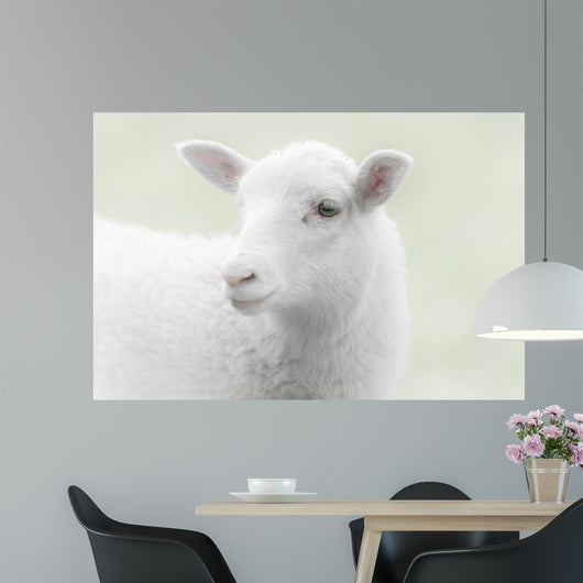 White Lamb Green Wall Mural