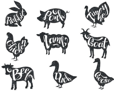 Butcher Shop Animal Labels Wall Decal Sticker Set