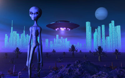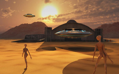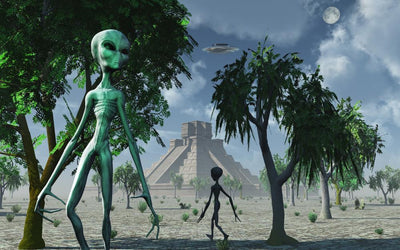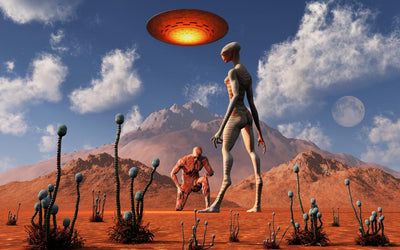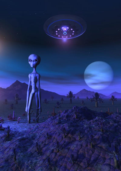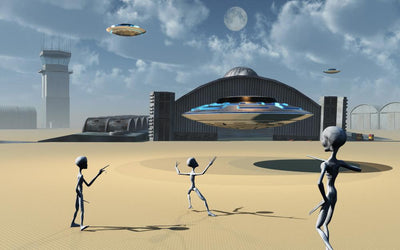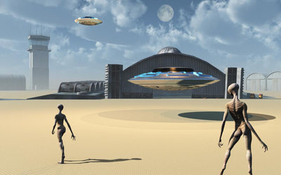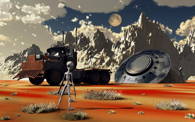 Grey Aliens and Their Space Craft Desert Wall Decal