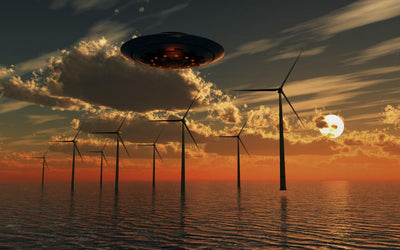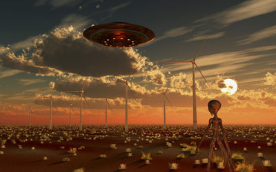 Alien Reptoids and Their Flying Saucer Evening Wall Decal