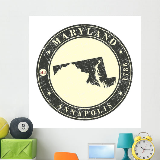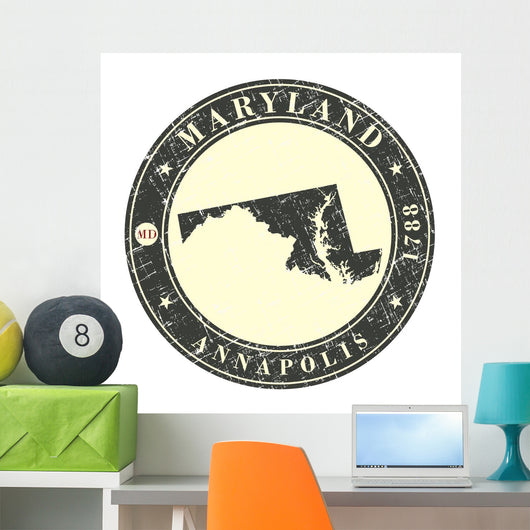 Vintage Stamp with Map Wall Mural
