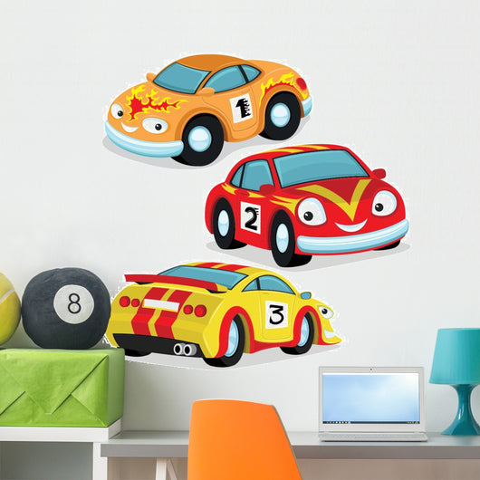 Cute Racing Cars Wall Decal Sticker Set