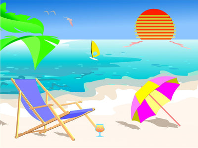 Summer Beach Sunset Illustration Wall Decal