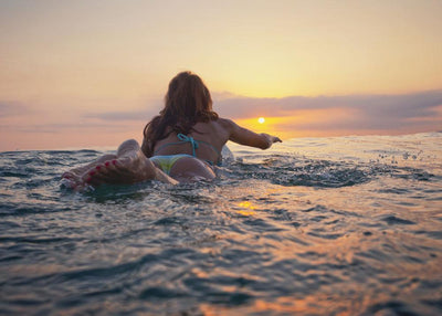 Woman Laying Surfboard Watching Wall Mural