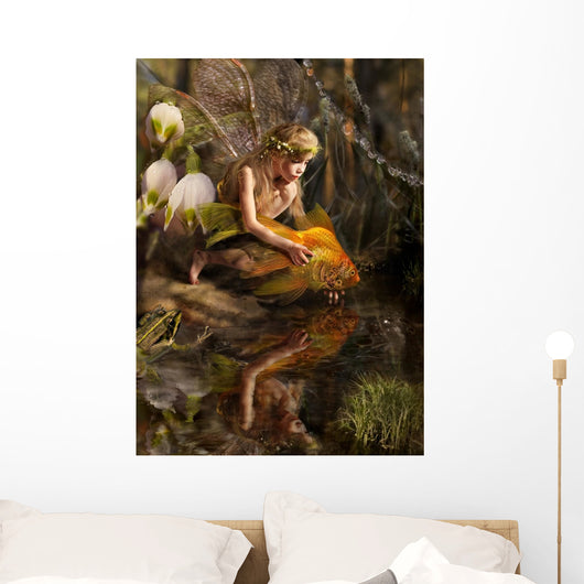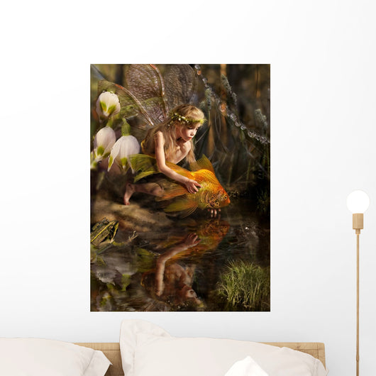 Girl Releases Gold Fish Wall Decal