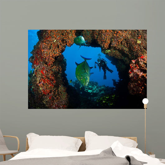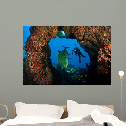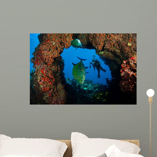 Bluefin Trevally and Diver Wall Decal