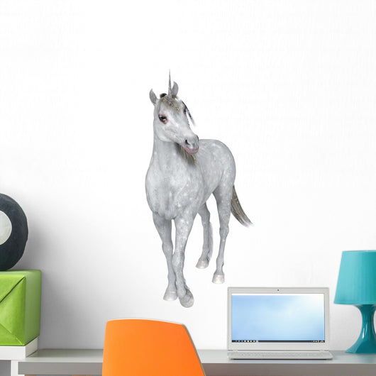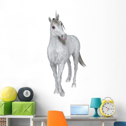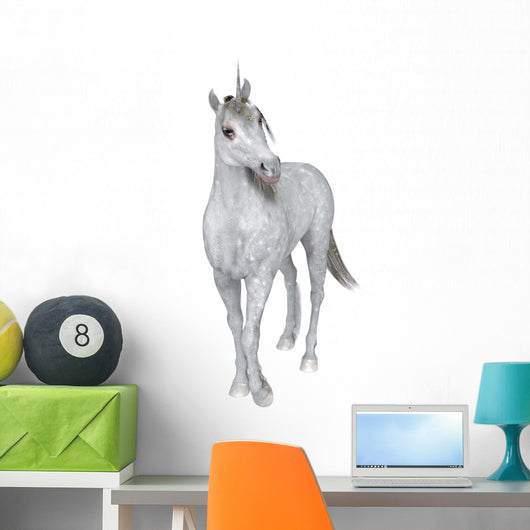 • Curious White Unicorn Wall Decal