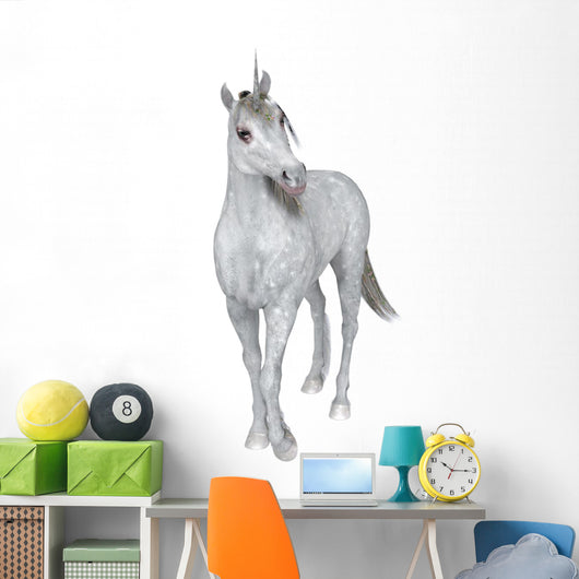 Curious White Unicorn Wall Decal